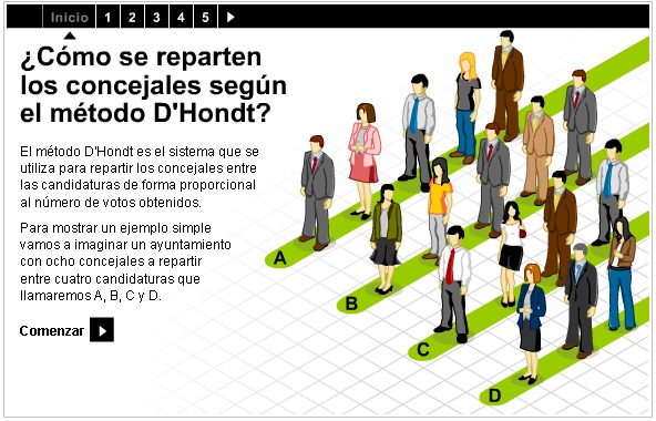 A través de unas pocas preguntas podrás descubrir en elecciones.es cuáles son los partidos más cercanos a ti. Visitando la web del Ministerio del Interior para las Elecciones Locales 2011, encontré una explicación de cómo se reparten los concejales (pincha aquí)
